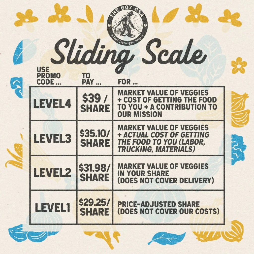 In 2026, our CSA will run through The 607 CSA. Sign-ups will be done on their website. There will be three options: